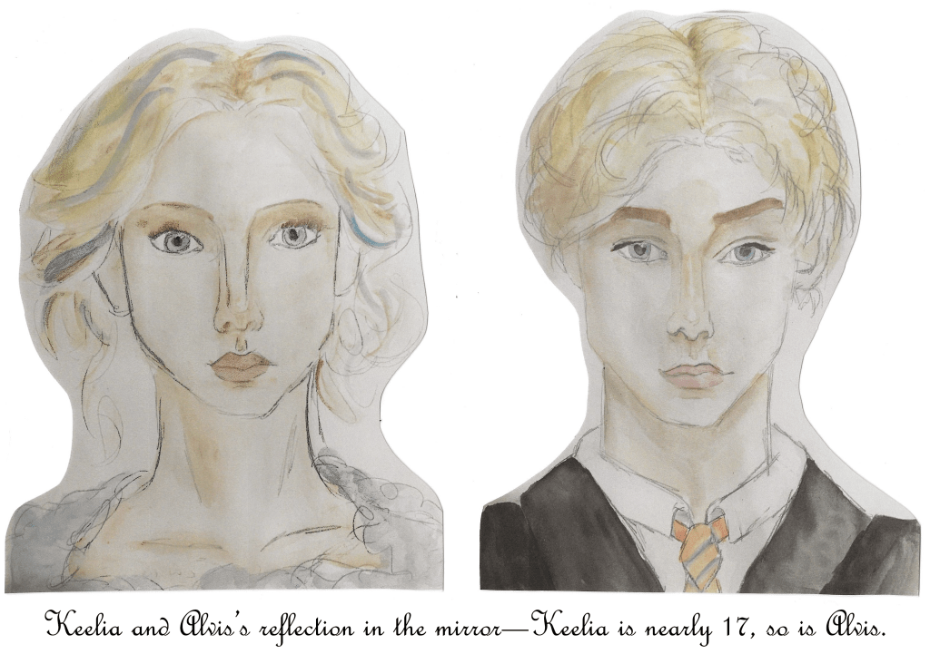 “Oh, he’s right! You do look similar; you guys should totally go and see!” Delisa giggled, pointing at the mirror. Keelia stood up and looked inside the mirror, but she didn’t see why Delisa was laughing at the similarities. Whoa, she isn’t joking, Keelia thought cautiously. Alvis had turned even paler, but Keelia didn’t notice until Delisa asked, “Alvis, you should go lie down. You really don’t look good.”